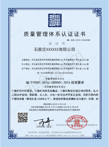 河北誠鑒認(rèn)證有限公司(簡稱誠鑒認(rèn)證/CJCC),創(chuàng)立于二零一七年,經(jīng)國家認(rèn)證認(rèn)可監(jiān)督管理委員會(CNAS)批準(zhǔn)(批準(zhǔn)號CNCA-R-2018-412),中國合格評定國家認(rèn)可委員會(CNAS)認(rèn)可(注冊號:CNAS C303-M)),是從事質(zhì)量管理體系、環(huán)境管理體系、職業(yè)健康安全管理體系認(rèn)證,具有獨(dú)立法人資格的第三方認(rèn)證機(jī)構(gòu)。